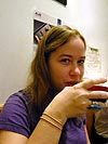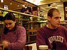 scott and anuj where there as well, but anuj and john left when it appeared that we wouldn't be able to get in. we were finally able to talk our way into the place, with eliza and paula, followed by rebecca and amy. amy didn't stay long, and when she left, lisa stopped by briefly before she left as well. i think amanda spent most of the time making fun of me, which i think is now her favorite hobby. i played her in a game of 9-ball foosball and lost 4-5. it's been a long time, she said i cheated because i spun the poles, i said she cheated because two of her balls when straight into my goal on the first hit and she wouldn't let me change the rules. despite the fact that i lost (i like to think on purpose), it felt good to get my hands on those foosball handles. felt like home. my total liquid intake for the evening: two root beers. rebecca told us stories from her semester at sea and the crowd was especially delighted by her turkish bathing house molestation anecdote. amanda had her own molestation story of when she went to foxboro stadium recently and was groped by drunken patriots fans on her way to the bathroom. rebecca and paula traded wedding tips with one another. scott revealed more of his past, and the evening start out with a spirited conversation on cow tipping and cowpie tossing in the midwest. that half of the table also talked about the best way to give yourself an affordable haircut, whether it's cut by a significant other, an electric clipper, or the flowbee. the conversation wouldn't be complete without another headscratching discussion on why i don't drink. eliza and i showed each other the content of our bags and i discovered that she actually belongs to a book club and their current book of the month is the name of the rose by umberto eco. i also learned that eliza wasn't the only one, but a lot of people downstairs belonged to book clubs (although rebecca recently quit hers, good for her!). i never felt more stupider in my life!