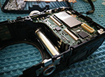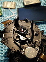 i had some time on my hands so i decided to open up the camera once again, see if i can disassemble the lens housing this time around. taking apart electronics is actually kind of fun, i get to see how it works on the inside. when i opened up the lens housing, it sort of came apart in a jump of curled ribbons. i was afraid to go any further, and it took me a while to figure out how to put the housing back together again.
