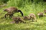 coming back on the trail, we came across 4 adult canada geese guarding a group of maturing goslings. when i tried to pass, two of the adults raised their necks and began hissing. i was actually a little scared and backed up. geese don't seem that imposing, but i bet getting poked with a beak feels like getting hit with a hammer. but they were blocking our way so i waited until they were off to the side a little bit and my mother and i quickly passed by without making eye contact. an older couple on the other side of the path were still too afraid to go across.