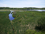i caught a glimpse of a trio of cedar waxwings flying off of a tree on the path, didn't have my camera ready otherwise i would've tried to snap a few photos, they're pretty birds. singing sparrows were common. in the water we saw green frogs and painted turtles.