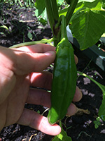 came across a 3in long hot pepper. i get these mixed hot pepper seedlings each year, so i never know which kinds i get until they actually start producing peppers. i've got a total of 4 pepper plants in my garden, can't wait to see what the other 3 will produce. my cucamelons are doing very well, much better than the ones at my parents' place. mine have big leaves, but i didn't check to see if there were any fruits yet.