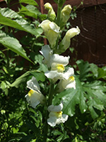 zinnias and snapdragons are blooming too. the first of the zinnia flowers look a little ragged, maybe not enough water. the thing about zinnias is they're pretty productive, as long as i snip off the dead flowers. one snapdragon plant has flowered, white blossoms with a touch of yellow. i've only seen yellow/white snapdragons this season, from my parents backyard to my own garden plot. where are the pinks and reds and peaches? it's been a very boring snapdragon season. a few plants haven't bloomed yet, so there's still some hope i may see some other colors.