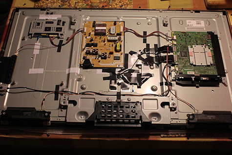 back at home, all was well, until my panasonic viera TC-L42ET5 HDTV suddenly switched off and began blinking its red LED. i noticed it was blinking in series and recognized that as a diagnostic indicator. i found the service manual and discovered that 8 blinks means the TCON power on the A-board (main board) is damaged. a few times it blinked 10 times, which meant the ZWEI/FRC was having issues (also on the A-board). so whatever the problem was, it meants having to replace the A-board. i'm not quite sure how the HDTV broke in the first place, it's never happened before, and i only bought it 2 years ago ($698), so the HDTV is fairly new.