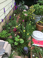 i took an occasional break to rinsing off the flecks of paint from my body, water the garden, pull up some weeds, and get a drink of water. by noontime the sun was beginning to peek around the corner. i kept working until 1:00, when finally the sun was just too much to handle. i think i may have even gotten a slight sunburn on my right arm (the side facing the sun).