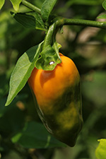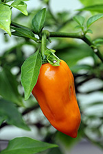 during the summer he leaves it outside where a combination of warmth, sun, and pollination produces habanero peppers. the weird thing i noticed today was yesterday i saw a pepper that was partially orange; when i saw it again today, it was completely orange! that was a quick color change.