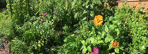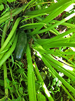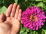 back in cambridge, after changing into a pair of shorts, i bicycled to the community garden. with all the sanding work i've been doing, i haven't had time to visit my CGP and it's been 11 days since my last visit. my plot was like a jungle, a mixed sea of greens punctuated by large round discs of colors, unusually large seed-grown zinnias. i almost missed it, but behind the wall of sunflower stalks, there was a lupine flower! i'm surprised it flowered earlier than the lupine in belmont, since this particular plant doesn't get as much sun.