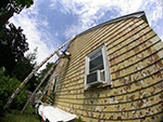 today's sanding up upper left-of-middle, the hardest and most dangerous part since it involves standing on top of the ladder. while my father was still home, it began to rain a little bit. i froze, waiting to see whether or not it was going to get any heavier. however, after a short period, it simply stopped. my father left for work while i continued sanding.