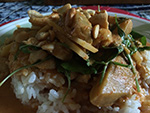 for dinner we had some homemade thai red curry. we were using authentic red curry paste this time, which is much spicier than the prik khing paste from last time. we also had thai fish sauce. from the backyard garden we had eggplants, thai basil, and some tomatoes.