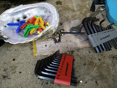 today i sanded the front area of the house by the garage. most of the time was spent in preparation (laying down the tarps, setting up the ladders, figuring out a way to elevate the shop vac) and scraping, with only a bare minimum of actual sanding. i used the belt sander, which is hard to work with, but it sands much faster. the strategy is to go over everything once with the belt sander, then switch to the orbital sander for detail work.