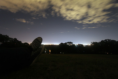i arrived around 12:30. what surprised me was how many cars were parked outside the park. there is no overnight street parking in arlington, but here were all these cars. the place must've been crawling with other like-minded stargazers, but i couldn't see them in the dark. i found a spot along the side of the hill facing boston and put down my towel so i could lie down. when i got there the sky was full of stars; as soon as i settled in, clouds began to roll in. the clouds didn't leave until 2:00. up to that point i'd only seen 4 shooting stars. once the sky was clear, i saw about a dozen more, before the police came. i was very quiet, but a large group of people were being noisy and a neighbor complained (at one point i heard a man yelling from a house, "go home!" when the police finally showed up). the police took everyone's information before we left.