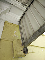 when my father came home, we went to home depot to look for metal L-braces. these would replace the ones on the current awning, which have not only rusted, but have been bent out of shape due to many winters of heavy snow and ice sitting on the awning. we couldn't find the right size of L-brackets (the ones we found were for joining structural studs), so we ended up getting a length of aluminum so we could bent and drill our own compatible L-brackets. home depot actually sells awnings, but the guy we spoke with said the in-store ones weren't very good, and that there were better selections on the home depot website i could order instead.