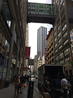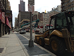 so we walked down 5th avenue. before we got to the flatiron building, we took a detour on one of the side streets towards 6th avenue. there was all sorts of wholesale stores, selling everything from jewelry, to hats, to cheap handbags. the street was clogged with delivery trucks making their rounds. my mother went to one jewelry store and bought half a dozen earrings. once we reached 6th avenue, we headed up (saw a toppled crane!) until we were back at greeley square again, the head of korea town.
