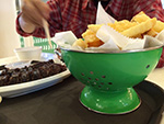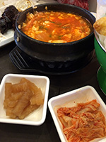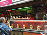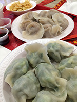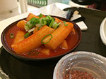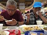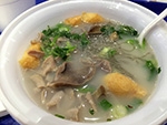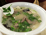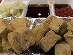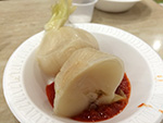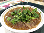 we arrived in flushing by 4:00p. we picked up a few things first (like smoked duck and special northeastern china flatbread) just to get them out of the way before making it to the basement food court of the new world mall. we found a table and began to collect things to eat from the various food shops lining the perimeter. it didn't seem as busy as our past visits, maybe because this time we were here during the mid-late-afternoon crowd. enough time had elapsed since lunch that i was already hungry and looking forward to eating again. we got duck broth soup, yiansuji, smelly tofu, lamb and garlic chive dumplings, squid nugget soup, lamb broth noodle noodle, and xi'an lamb paomo. i went to get some bubble tea but the shop i went to were out of tapioca balls, and another shop was too expensive ($4.25).