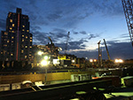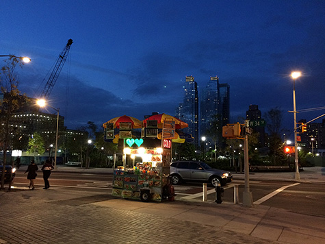 since there's no real place to sit by the bus line, we waited in the park surrounding the hudson yards station entrance. nearby was the ongoing construction site, a forest of cranes lit up by flood lights. for some reason there were still people working. my mother was the first to see a rat. then my father saw one. finally i saw one too. apparently the park is infested with rats. we saw a woman lie down on a bench and almost wanted to warn her.