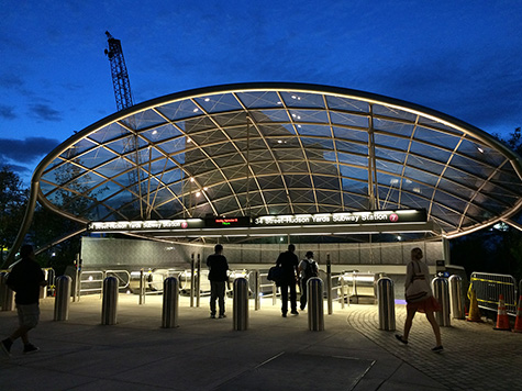the ride back was simple enough: from one terminal of the 7 train (flushing) to the other terminal (hudson yards). the new station at hudson yards saved us a lot of time, since normally we'd get off at time square or penn station and walk 20-25 minutes to the javitz center to catch the returning megabus. nearly everyone got off at time square, seemed like we were the only people going to the last station. we arrived at hudson yards at 7:00p, using the station bathroom (inside the station after you pay your fare) before coming up to the surface.