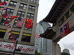 skirting by chinatown i spotted the secret battle of chinese flags being wages on its streets, oblivious to most passerbys. from my earlier visit to chinatown, garlands of US and taiwanese (republic of china, ROC) flags were already festooning the streets in preparation for chinese independence day. but today i noticed some large china flags (people's republic of china, PRC) hanging from a few buildings.