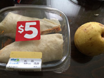 a spare pair of socks, canon 60D with 18-200mm lens, 60mm macro lens, 10-22mm wide-angle lens, fuji 3D camera, SJCAM SJ4000 with a few attachments, selfie stick, assortment of camera batteries, phone charging plugs and cables, bag of trail mix, 2 cliff bars, bag of toiletries, contigo insulated mug, and a quick-dry towel. there was nothing to eat in the house so i went across the street to the supermarket looking for something readymade. i ended up getting a buffalo chicken wrap for $5. i brought it back home to eat, along with an asian pear. i finally left for south station by 11am.