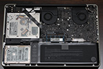 after the hardware fun came the software fun, as i cloned my system onto the new SSD drive, minus the user folder (which will continue to reside on the regular HD). carbon copy cloner said the whole procedure took 1:30 hours, but it felt more like 2+ hours. i then started up the computer with the SSD. what would normally take around a minute now takes just a few seconds to boot. i pointed the location of the home folder to my old user folder. applications now open up near instantaneously. it'll take me a few days to see what other speed improvements there are.