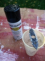 i went out again briefly to coat the old doorbell plate with some black spray paint. maybe it would've been easier to buy a brand new doorbell kit. but the old plate was perfectly fine, just needed a fresh coat of paint, so i only needed to replace the doorbell button itself. i was in a rush to get this done because we needed to install the doorbell for tomorrow night, when the trick or treaters will be out.