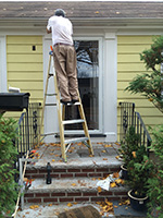 finally, we ended the work day by reinstalling the gutter downspouts. my father had already put back the two spouts by the garage, but there were still 5 downspouts through the perimeter of the rest of the house. at one point, while moving a ladder, my father forgot he left a power drill on the platform and the tool fell off and hit him on top of the head. fortunately it was the flat end (and not the pointy end).