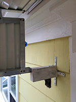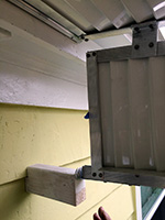 arriving in belmont, i helped my father figure out the wooden braces situation for our awning. i suggested we anchor the rear awning bracket first, then mount the awning manually by holding it in place to see whether or not the two wooden braces he'd already made were of the right length and location. that was the only way to accurating access them. even without nailing them to the house, the braces held in place from the weight of the awning. we found out right away that they needed to be at least half an inch higher than their current location. so my father cut off an additional half inch notch on each pieces. now they need to be painted over before we install them. at this rate, the awning will probably go up either saturday or monday.