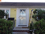 i waited for my parents to come home (around 3:30pm) so my father and i can finally install the new awning. once we slid the awning into the bracket we'd already nailed into the house fascia a few days ago, we could prop in the wooden brackets and the awning could hold on its own before we screwed everything into place. we took a long time to measure with a leveler,