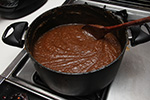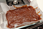 after 1-1/2 hours the quince puree was finally finished boiling. it wasn't a deep rose color at all, but rather this brown mixture with maybe a hint of red. maybe it's because i used very dehydrated pulp, maybe it's because i waited almost 3 weeks to finally use the pulp for membrillo. whatever the reason, my finished puree didn't not resemble any of the known recipes. i scooped the hot sludge into 2 parchment paper lined lasagna dishes and put them into the oven to bake for an hour at 150° (the lowest temperature setting). the mixture still looked sort of soupy, and i wasn't confident it would solidify, but i gave it shot nonetheless.