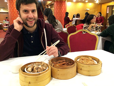 alfonso was asking me if i could take him to a good chinese restaurant nearby. i asked him if he's ever tried dim sum before, and if he was interested, i could take him now, weekend (sunday) morning being the traditional time for dim sum. i told him we could leave as soon as he got ready, but spanish people eat late, as i waited for him to finish chatting with his parents. we didn't leave until 1pm.