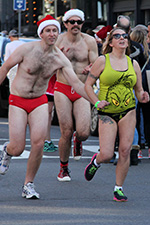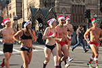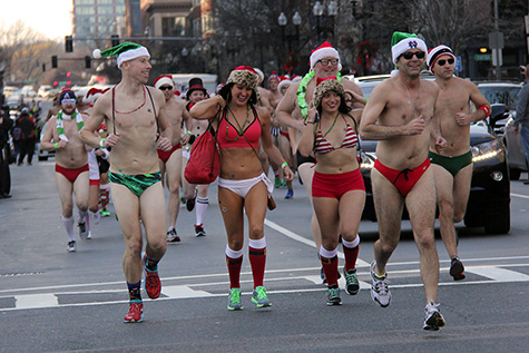 the speedo santa run wouldn't be until 1pm so i had plenty of time this morning to get ready. the only breakfast i had was a leftover portuguese tarts. i left the house a bit after noontime via bicycle. it was an unseasonably warm day with temperature close to 60 degrees. typically the weather for a speedo santa run is cold, which makes it that much crazier to see people running around in underwears and swimsuits. now with the temperature more spring than winter, what's the challenge in that? i heard because of el niño this year, it will probably be warm here in boston all the way until mid-january. maybe they should change the name of the run to "summer in winter" if this warming trend continues.