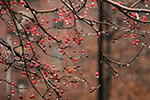 i saw a lot of red buds on trees that i thought were flowers from trees confused as to what season it was due to the recent stretch of warming weather. but upon closer examination i realized they were red berries, not flowers. so the trees haven't been tricked after all it seems.