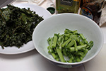 with half a bunch of kale i managed to make 3 batches of chips. since i was using the oven anyway, i put in a pan of sweet potato as well on the bottom tray (50 minutes). i tossed out the kale stems before reading that i could use them in a smoothie so picked them back out of the trash can. 25 minutes to bake a tray might seem excessive, i'll probably make them for less time next time. the chips were crispy, but almost too crispy, sort of falling apart in my mouth as kale dust.