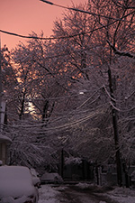of course my good-for-nothing upstairs neighbors didn't shovel the sidewalk while i was gone. i dropped off my things and then outside to clean up. it wasn't very hard, as the snow was still very slushy, and wasn't sticking to anything yet. many other neighbors were out shoveling as well. everyone would stop intermittently to admire the sunset and the snow, and to take photos with their phones.