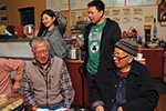 around 6pm i began to slip intermittently into the backroom to watch the superbowl on the old analog tv hooked up to a digital receiver box attached to a massive homemade HD antenna. everyone finally started leaving by halftime. mary and i walked back to our place. she did a small load of laundry, but went to sleep with the dryer running. i hope she can sleep through all that noise!