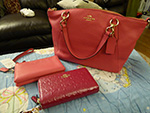 we didn't arrive at the coach outlet until close to the end of our mall tour. for some reason it's always crowded with chinese people, enough so that they hired some chinese-speaking attendants. nothing seemed attractive and everything looked expensive, until somebody told us that everything in the store was 50% off. i know nothing about purses and bags, so i picked one that was small but not the smallest, a pink leather money pouch (they call that a wristlet i learned later) which seemed reasonable at $47.50 after discount. that was probably the end of it until we turned a corner and there i saw a pink handbag i knew sunmeng would like. retailing for $295, but discounted to $147.50, i thought it was pricey but doable, and it was definitely what sunmeng would want. at $200 i was maxed out in regards to handbag budget, but then we made another circle around the store, and saw a bunch of people snatching up small hand purses. i picked up a pink one more out of curiosity. why the sudden interest? i asked my mother. a nearby chinese attendant answered our question: items marked with red numbers are clearance items, and clearance items have an additional 50% discount on top of the storewide 50% discount. so that little hand purse (a double phone wallet is the correct terminology) was going to sell for $170, but 50% of that was $85, and another 50% dropped the final price to $42.50. this would be the perfect present for sunmeng's mother, and i told my father this, and he said he thought the same thing.