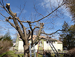 i used a combination of electric chainsaw, industrial looper, and a pair of bypass pruning shears. i got a text from julie while i was working, hanging out in harvard square, getting some cheap tacos. the sky was blue at first with a mixture of clouds, that gradually turned grey, but would sometimes alternate between the too. temperature was in the upper 30's, but felt warmer when i was working in the sun. i took a few breaks, going back inside to get something to drink, or go online, while my mother busied herself with knitting and watching season 8 of murdoch mysteries that i managed to download through torrents.