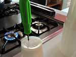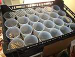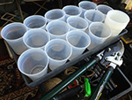 i made some planting pots with the 45 plastic cups i had on hand. heating an awl over the gas stove, i punched drainage holes into the bottoms.