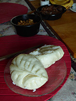 my mother had a plate of duck gizzards purchased when she was in chinatown earlier today getting a teeth cleaning; the cleaning didn't happen because there was something wrong with the novocaine. she also bought these massive meat buns, $1 a piece. the bun itself is a little sweet, reminds me of char siu buns. i left belmont by 6:30pm to attend a special community garden meeting.