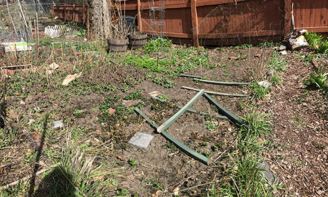 i remembered i had a garden plot, and i wanted to get some work on it before i left, because i wouldn't see it again until june. it was 73° today but very windy. i opened a window to air out the house. i wore a jacket thinking it'd be cold, but it was a warm breeze. every year i get a carpet of ground ivy and peppermint, which have to be dug up before they take over the garden. i've been working at it over the years so there wasn't that much, but i still had to dig some up.