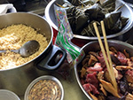 i went to the cafe around 1:30pm to help my mother wrap some zongzi for her 100 zongzi order. this would give me some hands-on experience. the cafe was a hubbub of activity, with electricians installing the automatic door, cleber painting the cafe exterior, and my grand uncle's new nurse arriving.