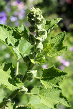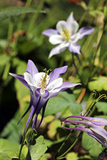 i also have a solitary columbine plant in my plot that has a few showy flowers. they might make good pressed flowers but i couldn't bare to cut any of them because they looked so pretty. there's also a transplanted 2nd season hollyhock that has flowered yet but has some buds. finally, a wild tomato grows in the empty plot.