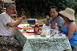 my sister came home in the late afternoon, insistent that we have some sort of barbecue. she did most of the food preparation. i like my barbecue traditional, so i wasn't thrilled with her curry burgers or mint-flavored chicken.