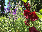 i went to visit the community garden first to plant the eggplants. i think my plot has the biggest color display with a field of larkspur in various shades of purple and pink. my maroon hollyhock has also bloomed. i don't see any other gardeners with either larkspurs/delphiniums or hollyhocks. probably the reason why nobody from the garden committee has hassled me for neglecting my plot is simply because it looks like i've put in a lot of work, even though everything that's currently growing were all self-sown. the mulberries have also started falling, but it's still early so i don't have a mulberry carpet yet.