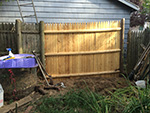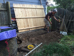 once the bamboos and some random tree roots were dug up, we could finally dig out trench and post hole. we didn't go down far enough because once we installed the fence and saw it from a distance, it's obvious that it's uneven. my father said it was good enough, but i told him if we were going to put in a new fence, we should do it right instead of just good enough. so maybe next week we'll pull out the post and reset the fence so it's more level.