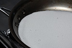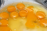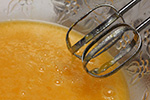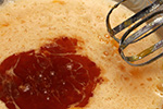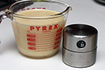 i did something different this time around: i mixed the eggs with the sugar and salt first, before adding the vanilla and milk. this allows the course texture of the sugar to completely break apart the eggs. usually when i mix everything together, i get little chunks of eggs still floating around; doing it this way ensures the eggs are popularly blended.