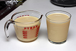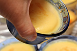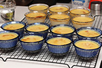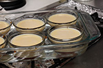 i'd be making 14 flan (6 for my sister's guests, 8 for myself), and i needed to scale the recipe which is set for 6 servings: 12 eggs, 8.4 cups of milk, 3.5 tsp of vanilla extract, 1.17 cups of sugar, 0.58 tsp of salt, and another 1.17 cups of sugar for the caramel. unfortunately i made a mistake in my math: i only needed 7 cups of milk, so i added 1.4 cups more than i needed.