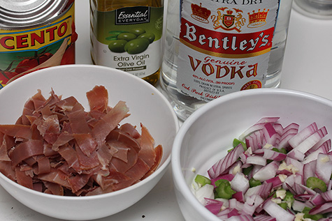 we got to talking about spanish siestas which made cristina decide she wanted to go take a short nap. while she was sleeping i began cooking, making my vodka sauce pasta. i had no plans on sharing dinner with her because 1) she doesn't eat onions and 2) she's a vegetarian (and my sauce contains ample amounts of prosciutto). she woke up 30 minutes later and said she'd try some of the sauce with some ready-made raviolis she boiled in a pot.