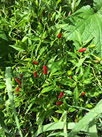 the hot weather is like steroids for the eggplants. they don't grow very tall, nor produce a lot of leaves, but i think they save all their energies for making eggplants, and i can't wait to harvest them, as i already see several flowers. the larkspurs have also started to blossom again; i think they weren't really dead to begin with (even though they produced so many seeds), all they needed was a steady drink of water to come back to life (at least some of the plants; others are actually dead). the garlic chives will soon flower as well, which will gave the bees something else to eat during the late summer early fall.