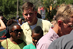 when the parade first began i sent cristina my location. she replied half an hour later saying she was still on the subway with no bike. at 2pm i got a text telling me she'd arrived at jackson square. i accidentally gave her the wrong instructions, saying that the parade was moving north on warren street when in fact it was going south. she wrote me 30 minutes later saying she was at the intersection of washington-warren but there was nothing there. she sent me her gps coordinate on a map and i could see exactly where she was. i did the same, not realizing whatsapp has a gps location feature (or maybe it's a feature of iphone). she finally caught up to me at wabon-warren around 3pm.
