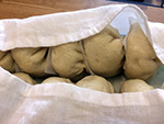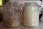finally after a week of cultivating my sourdough starter, i'm finally making the bread. i followed a new york times no-knead sourdough recipe: 3-1/2 cup of unbleached bread flour, 1 tsp kosher salt, 3/4 cup of sourdough starter, 1-1/4 cup of room temperature water. the recipe actually asked for lukewarm, but i felt lazy and wasn't in the mood to heat up the water in the microwave. the water was used to turn the gooey sourdough starter into a slurry before mixing it with the flour and salt. i used my starter from the pyrex bowl, which didn't seem to have as many bubbles as the starter in the jar, but when i went to scoop it out, it was very fluffy and light, inflated by all the yeast activity. as for the leftover starter, i moved it so it too can live in a jar, combined with a cup of flour and 1/2 cup of water to feed.