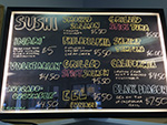 the illuminated sushi sign used to hang vertically, but my sister told my parents to hang it horizontally from the wall. i thought it was a terrible idea and fought it all the way, until my father put it on top of the cabinet and it fit in the corner perfectly. as for the sign itself, i wrote the original sign. originally it had just 4 items, but in 2012 they expanded their sushi menu to 16 items.